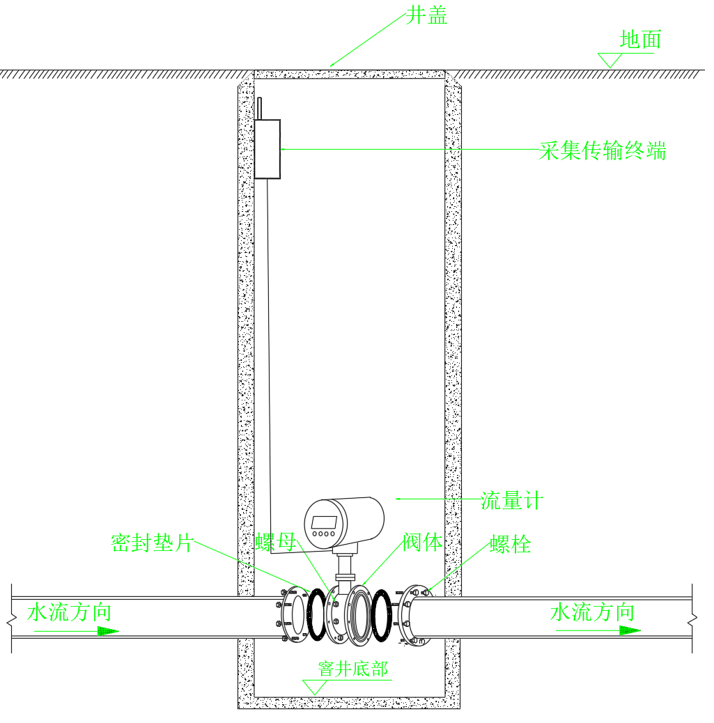 The DN100 is a intelligent electromagnetic flowmeter manufactured with advanced technology. Its electromagnetic transmitter core is equipped with a high-speed central processing unit, ensuring fast computation, high precision, and reliable measurement performance. The converter circuit design incorporates internationally advanced technology, featuring an input impedance as high as 10^15 ohms and a common-mode rejection ratio better than 100 dB. It offers superior immunity to external interference and 60Hz/50Hz interference, with a rejection capability exceeding 90 dB, enabling accurate measurement of fluid media with lower conductivity. The sensor utilizes non-uniform magnetic field technology and a special magnetic circuit structure, providing stable and reliable magnetic performance while reducing size and weight, resulting in a compact flowmeter design.